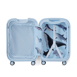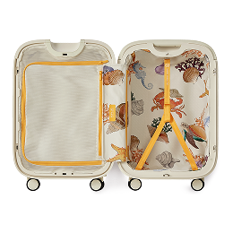 The lining features a playful ocean-inspired print that adds a fresh coastal accent to your travel experience.