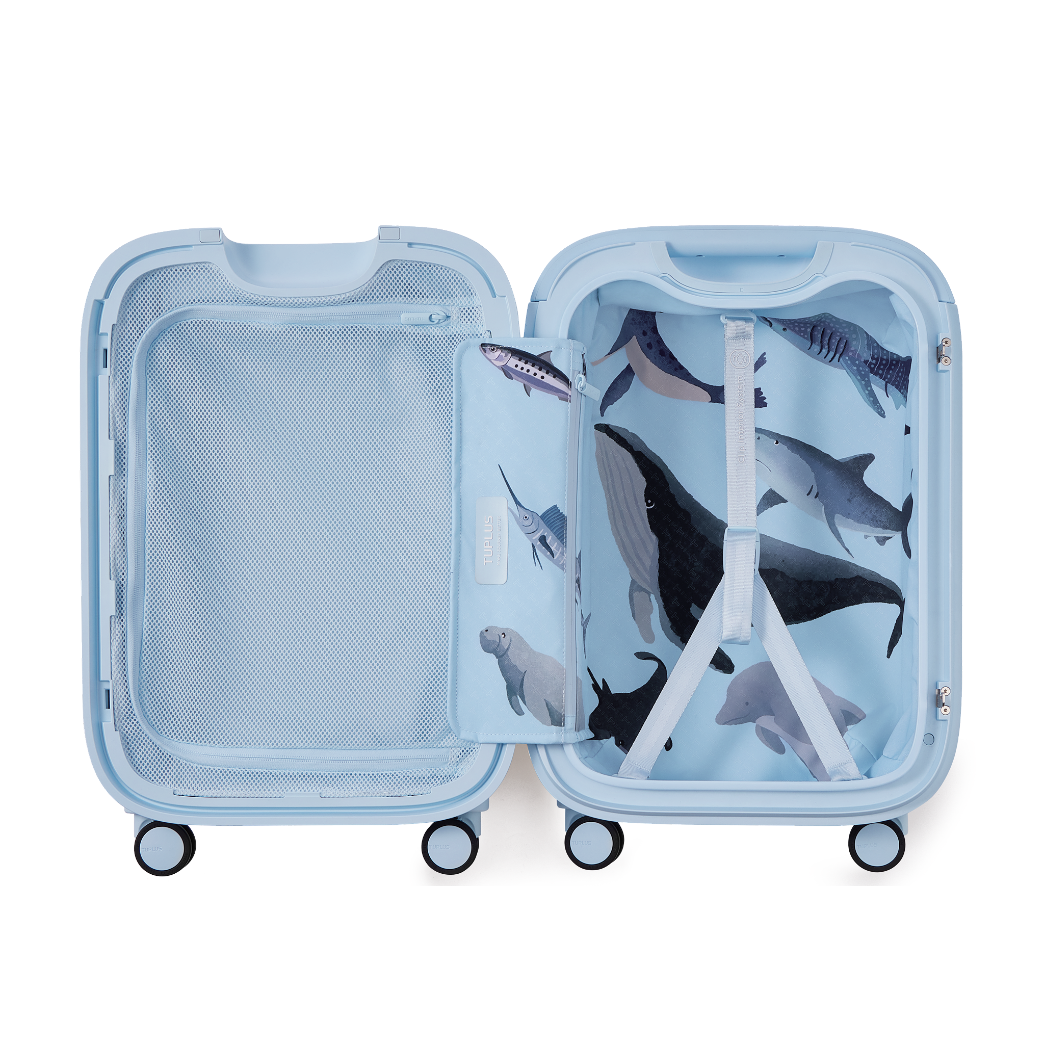 The TUPUS Time Capsule Ocean Holiday edition combines travel-ready function with distinctive style. Designed with a clean silhouette, it features an innovative handle-integrated telescopic system that replaces the need for a separate side handle--resulting in a sleeker form without compromising usability. From its smooth pop-up pull system to its detachable, washable lining, every detail is made to support an organized and comfortable journey.