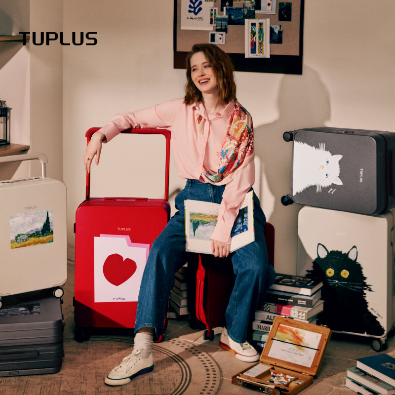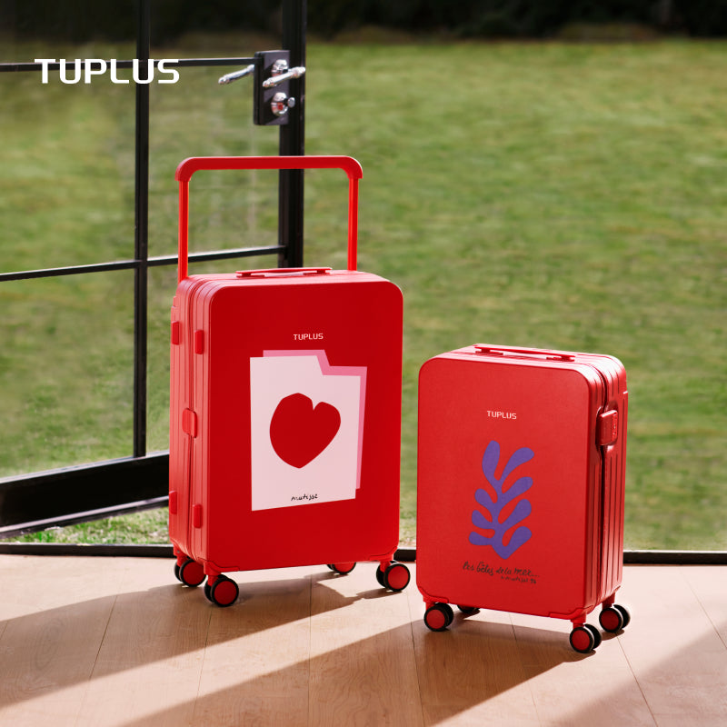 The TUPLUS x Henri Matisse lmpression Suitcase is a unique travel piece celebrating the iconic artist's mastery of color and form, Featuring an officially licensed image from Matisse's renowned works, Beasts of the Sea and Le Coeur on the front, this carry-on brings a touch of modern artistic flair to your journeys, Crafted from durable lightweight PC material, it combines this striking visual appeal with practical features for a stylish and effortless travel experience.